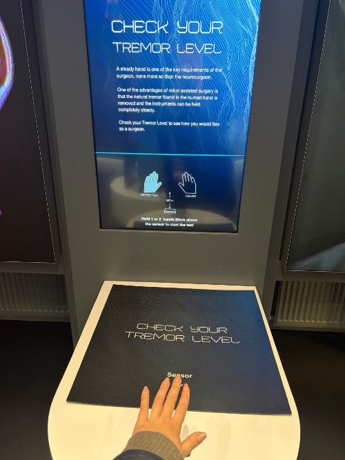The final hall is, logically, the future of surgery — robots and simulators. You can test your hand tremor and take a readiness-for-surgery quiz. Pleased to report I have no tremor, so a surgical career remains on the table for me.
